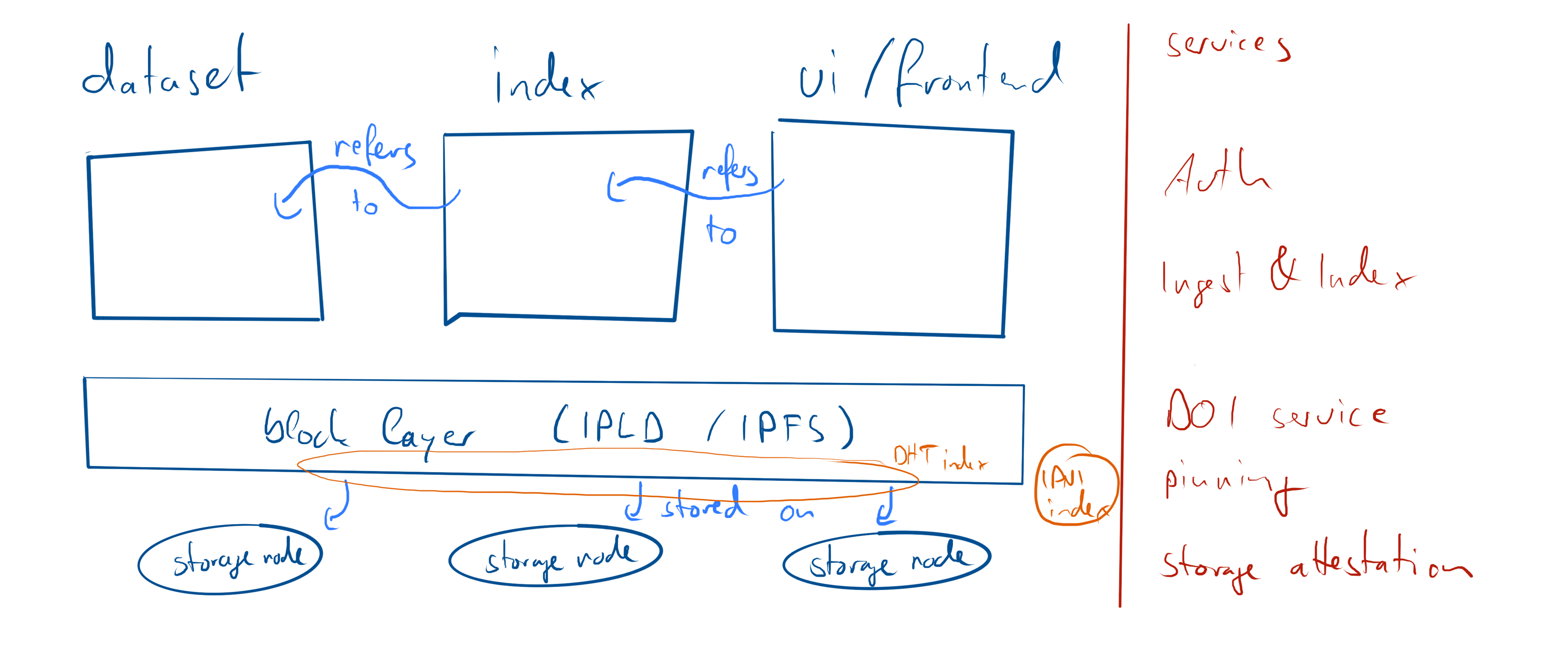 The specification distinguishes between data structures (usually structures based on IPLD objects) and services (computer systems running certain software, usually providing some APIs to users and other services).